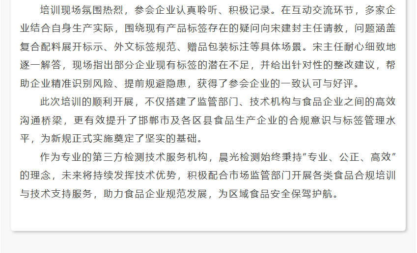 晨光检测助力邯郸市场监管 培训食品新规!