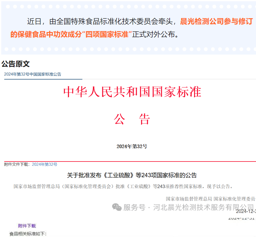 河北晨光检测技术服务有限公司(简称晨光检测),是一家专业的第三方检验检测、培训认证、技术服务机构,聚焦食品(含保健食品和食品添加剂)、农产品、饲料及饲料添加剂、植物提取物(含中药提取物)等行业。