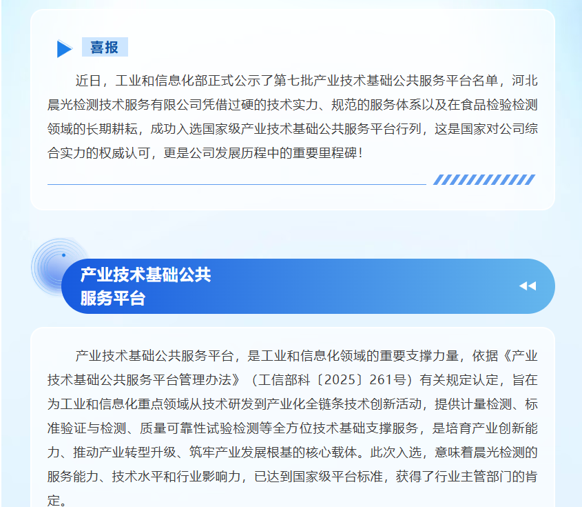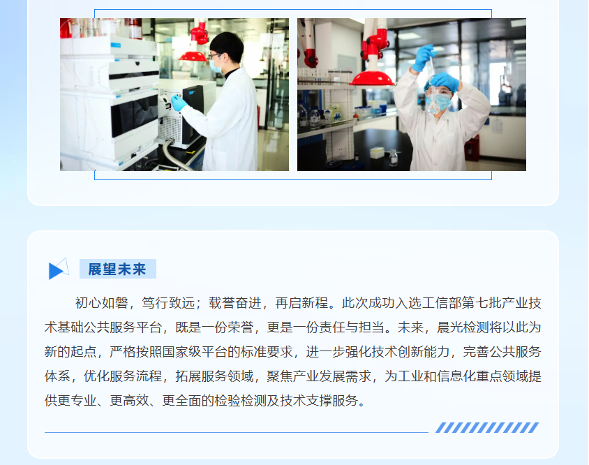 喜报|晨光检测荣登工信部第七批产业技术基础公共服务平台名单!